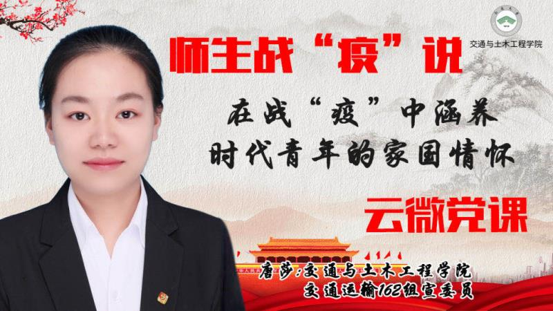 唐莎通过一首《奋斗的青春最美丽》青年突击队之歌,让青年学子们感受到奋斗的精神和对祖国的热爱之情;通过列举2003年的非典暴发、2008年的汶川地震、2020年的新冠肺炎疫情防控战,与大家分享了时代青年们的故事,让大家体会到什么东西都可以低估,但唯独不能低估青春的能量,当代青年正用无畏谱写了壮烈的青春赞歌,用行动涵养了家国情怀。最后,她呼吁青年学子们要心怀家国,脚踏实地,放眼未来。青年学子们聆听后,体会颇深,他们觉知作为当代青年,应时时刻刻牢记自身的使命与责任,把对祖国的家国情怀付诸于行动,时刻勉励自己,奋进有为,为实现中华民族的伟大复兴添砖加瓦。
