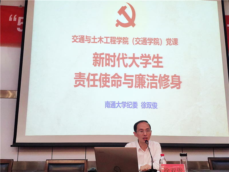 徐双俊着重从两个部分娓娓道来和阐述剖析。在第一部分,他结合知青时期习近平总书记的特别经历和疫情下的“最美逆行者”的感人事迹,围绕“强担当,有作为,服务宏伟事业”和“守初心,担使命,永葆廉洁本色”两个方面深入诠释责任使命与廉洁修身的丰富内涵和时代蕴意。在第二部分,他列举了古今鲜活的典型腐败案例,呈现了校园生活中的反面典型现象、具体表现,强调了腐败的种种危害,明确了全面从严治党的内容、重要性,旨在引导进步青年学子要积极培育和践行社会主义核心价值观,始终注重涵养诚信、自律、爱党爱国、节俭的优秀品质,增强廉洁意识,弘扬廉洁文化,提升廉洁技能,遏制不良动机,努力把自己培养成为让党放心、让人民相信的社会主义建设者和接班人。最后,他还通过pps对此次专题党课进行了梳理和总结,对学员们寄予了殷切的希望。