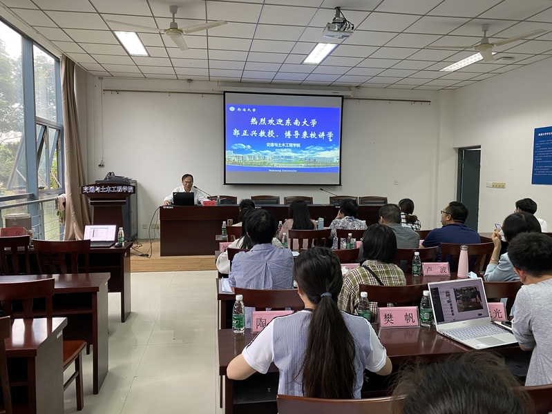 郭教授结合实际案例深入浅出的介绍了各类新型钢管脚手架与模板技术及其发展。主要内容包括模板脚手架发展回顾,规范标准对模板脚手架发展的作用,安全施工对模板脚手架发展的新要求以及新型钢管脚手架与模板技术。报告结束后,郭教授与师生们就学术前沿问题进行了深入探讨和交流。