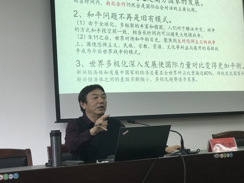 陈志杰分析了当前国际政治社会的形势和世界经济的特点,指出目前时代主题和世界格局有了新的变化,我国面临复杂多变的安全和发展环境,各种可以预见和难以预见的风险因素明显增多,国家安全是安邦定国的重要基石。我们应以更清晰的视角、更深刻的理解来把握当前中国、当前世界的发展趋势问题。