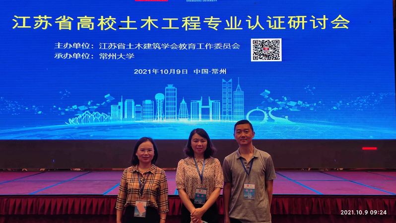2021年10月8~9日,由江苏省土木建筑学会教育工作委员会主办,常州大学承办的江苏省高校土木工程专业认证研讨会在江苏常州召开。公司副经理徐勋倩教授,经理助理陈敏教授,土木系主任张晨教授参加了此次研讨会。本次研讨会邀请了多名国内高校教授和专家分享了多年来参与专业认证的心得和体会。进行主题报告的专家包括:住房城乡建设部高等教育土木工程专业评估委员会主任委员、同济大学陈以一教授;住房和城乡建设部高等教育土木工程专业评估委员会副主任委员、东南大学童小东教授;南京航空航天大学吴瑾教授以及河海大学沈扬教授等。