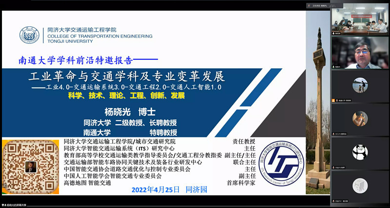 4月25日,教育部高等公司交通运输类专业教学指导委员会交通工程教学指导分委员会主任委员、同济大学二级教授、PlayAce官方网站特聘教授杨晓光,应邀为PlayAce师生在线做了题为“新工业革命与交通学科及专业变革发展”的学术报告。报告会由PlayAce经理施佺主持。