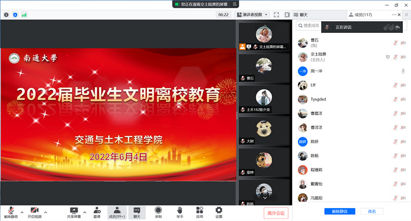 6月4日上午,PlayAce组织全体2022届毕业生线上开展文明离校教育。公司党委副书记、副经理陈妍参加活动。