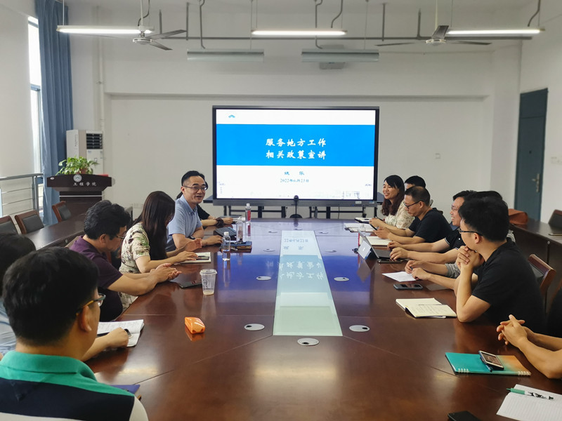 又讯:6月23日下午,公司邀请了服务地方工作处副处长姚乐、姚娟老师就服务地方工作相关政策进行了宣讲。会议由公司副经理徐勋倩主持,公司经理施佺、副经理邵叶秦和相关教师参加了会议。