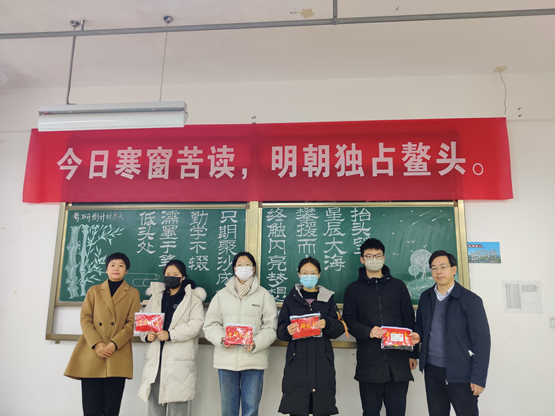 为帮助考研学子缓解备考压力,鼓舞考研士气,坚定考研信心,12月16日上午,公司举办“一‘研’为定,同心筑梦”考研慰问会。院领导张莉莉、施佺、陈妍参加慰问并为2019级考研员工发放考研暖心礼包。