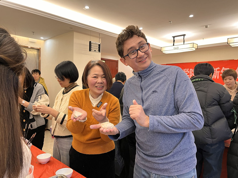接下来老师们纷纷卷起衣袖,和面、擀面、调馅、包馅,分工合作,一气呵成。外籍教师也融入其中,有模有样地学习包饺子。大家边包饺子边谈工作、聊生活,其乐融融。不一会儿,形状各异的“作品”诞生了。品尝着自制的饺子,大家觉得格外的温暖