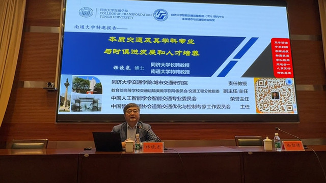 杨晓光教授以同济大学交通工程学科形成的历史沿革为切入点,详细讲解了交通运输工程学科的概念、溯源及架构,围绕“本质交通及其学科专业再解”“交通问题与发展需求之趋势”“新交通学科专业之与时俱进”“新交通人才培养体系之构思”四个方面,对交通与运输及其系统再认识进行了详细讲解。杨晓光就公众对交通工程专业的偏颇认知进行了修正,指出交通学科是人类认知与破解交通问题的高阶智慧与学问体系。他讲述了世界智能交通系统的发展愿景、我国交通强国发展战略,希望公司交通学子们勇于担当,坚定理想信念,用青春和热情书写建设交通强国的壮丽诗篇。
