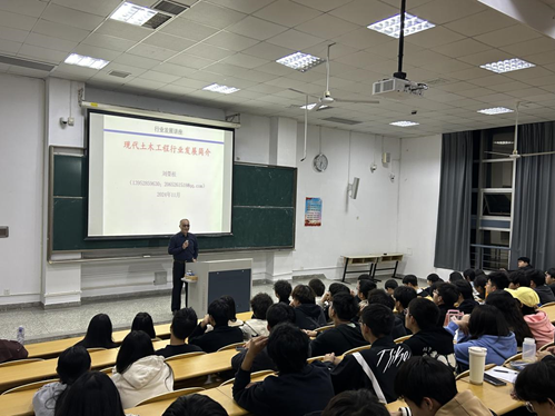 在互动环节,刘荣桂教授耐心、细致地回答了同学们的提问,为同学们未来的学习及职业生涯规划指明了方向。刘教授继续鼓励同学们,要在大学阶段学好专业课以及外语,在人工智能技术飞速发展的当下,土木工程行业必将迎来前所未有的新机遇,这也将为同学们提供更大的施展才华的舞台。