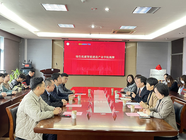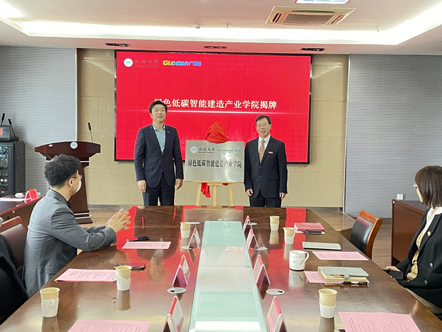 校企合作再结硕果,产教融合共谱新篇。1118日,公司与广联达科技股份有限公司举行绿色低碳智能建造产业公司揭牌仪式暨校企人才培养定制班合作签约仪式。公司党委常委、副董事长施佺,广联达副总裁、数字教育事业部总经理钱锋共同为绿色低碳智能建造产业公司揭牌。广联达数字教育事业部销售服务部总监刘德龙与公司党委书记张莉莉代表校企双方签订定制班合作协议。