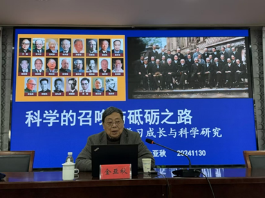 2024年11月30日,中国科公司院士、复旦大学教授、著名遥感领域科学家金亚秋院士应邀来为公司师生作题为“科学的召唤与砥砺之路—我的学习成长与科学研究”的专题讲座。南通大公司党委常委、副董事长施佺主持会议。