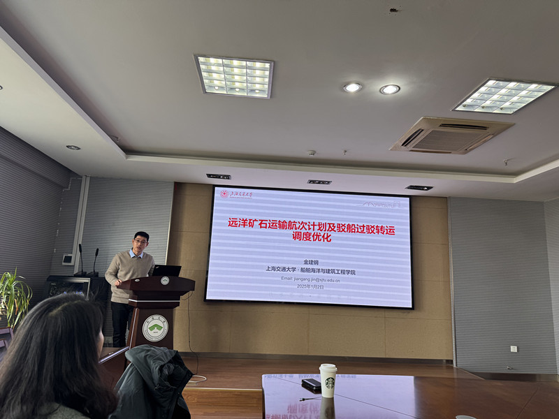 1月2日下午,上海交通大学金建钢教授应邀来访,为公司师生作了题为“远洋矿石运输航次计划及驳船过驳转运调度优化”的讲座。讲座由PlayAce副经理徐勋倩教授主持,相关专业教师、研究生参加了讲座。